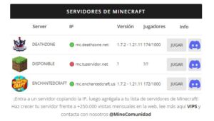 NUEVO IMPORTANTE: Por la reserva de un SLOT saldrás destacado en todas las webs de la red como https://mineservidores.com, https://minechecker.com, https://mineavatar.com, entre otras. Crea un ticket en https://discord.minecomunidad.com o enviale un mensaje al Dueño para reservarlo, tenemos sistemas que detectan los usuarios enviados públicos, si quieres hacer escalar tu servidor contacta ahora antes de que otro servidor lo haga.